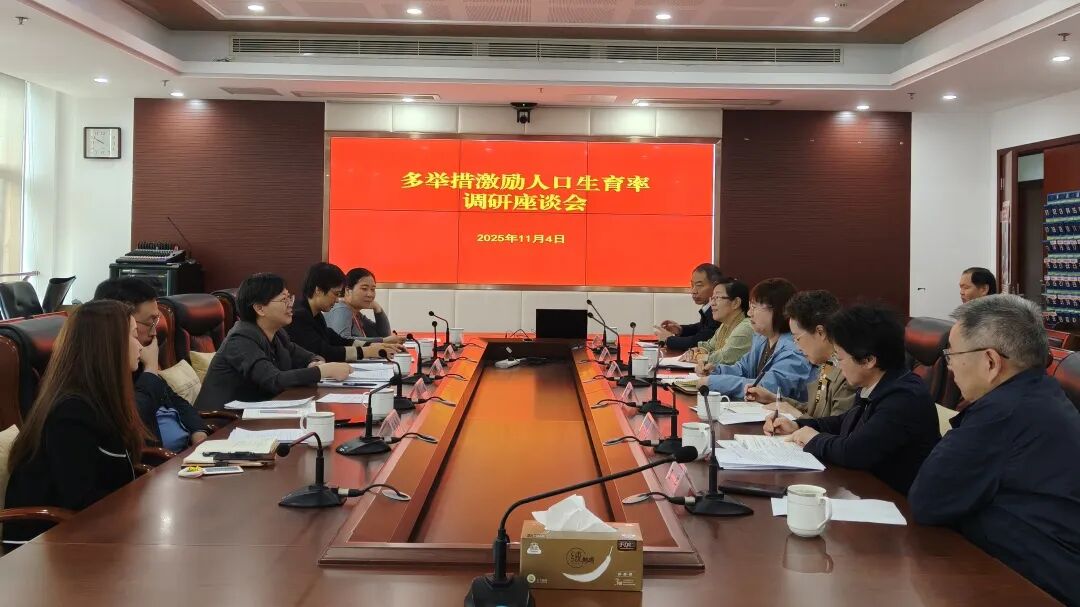 11月4日,九三学社中央委员会妇女工作委员会《关于多举措激励人口生育率的调研分析和建议》课题组一行来宁开展调研。九三学社南京市委员会专职副主委徐月红陪同调研。 社中央妇工委委员、社天津市委妇工委主任田菲简要介绍了本次调研的背景、课题研究的方向和意义,希望通过广泛了解各地在提高人口生育率方面采取的激励政策和医疗保障,最终根据调研情况分析形成相关的举措建议。 南京市卫生健康委副主任王安琴、妇幼处处长王爱青、南京市医保局待遇保障处副处长王鹏、医保中心医疗救助科(生育保险科)科长张莹莹分别就调研提纲内容,详细介绍了南京在生育支持上的政策体系设计、实行的各项支持举措,以及取得的成效和遇到的挑战,并与课题组成员进行充分的互动交流。 社天津市委妇工委专家顾问李维云、社天津市委妇工委委员刘丽兰、社江苏省委会宣传处处长周仲天、社南京市委会办公室主任张方荣、第一医院支社主委王军、市卫健委人口处四级调研员毛瑾等参加座谈。