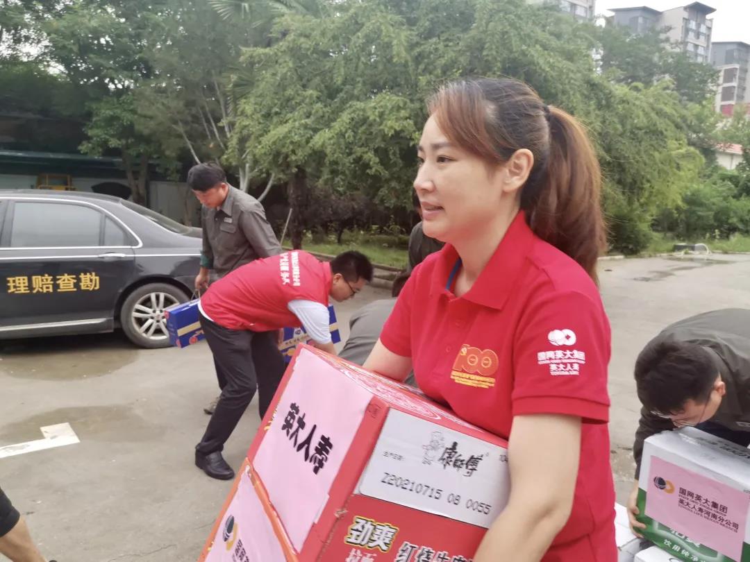 7月23日,九三学社南京市建邺区基层委员会委员、国网英大人寿河南分公司总经理助理张瑄,在郑州慰问供电抢修人员,为受灾严重的郑州西区供电分局、迎宾路供电所及两个抢修点,还有武汉驰援河南的抢修人员,送去矿泉水、牛奶、桶装方便面等慰问品。(章泳)