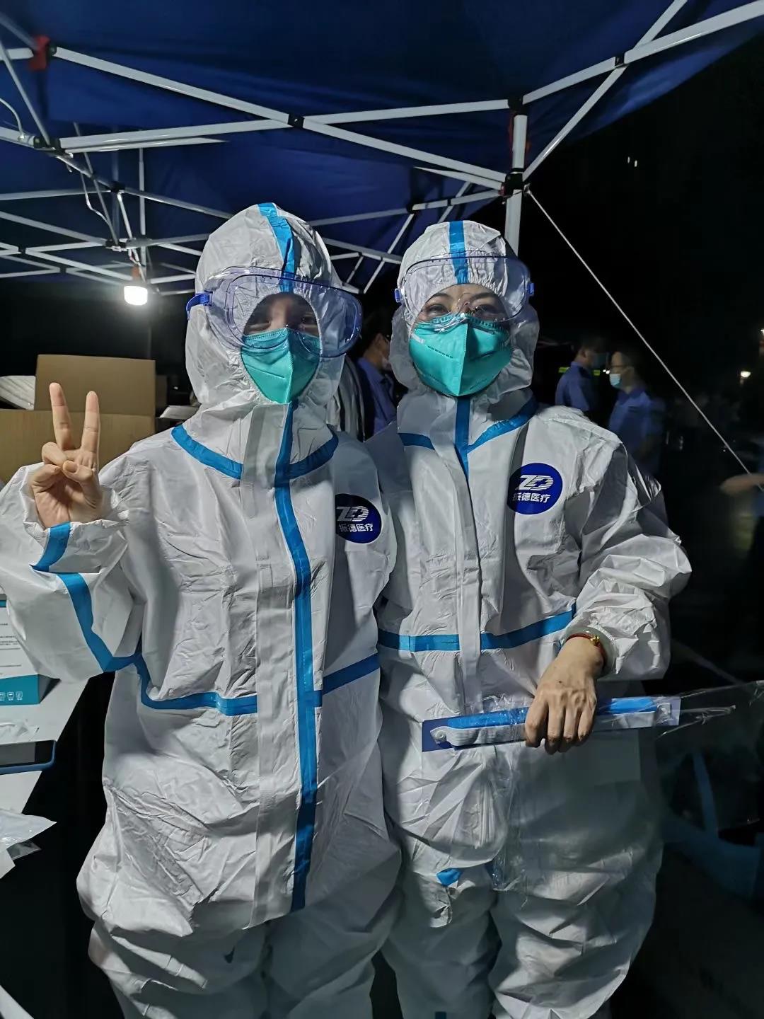 九三学社南京市建邺区基层委员会社员、南京明基医院的倪卫慧和刘晓丽两位医疗专家,在第一轮积极投身建邺区的社区核酸检测点的检测工作后,不辞辛劳,再次报名参加了第二轮核酸检测工作。(孙继红)