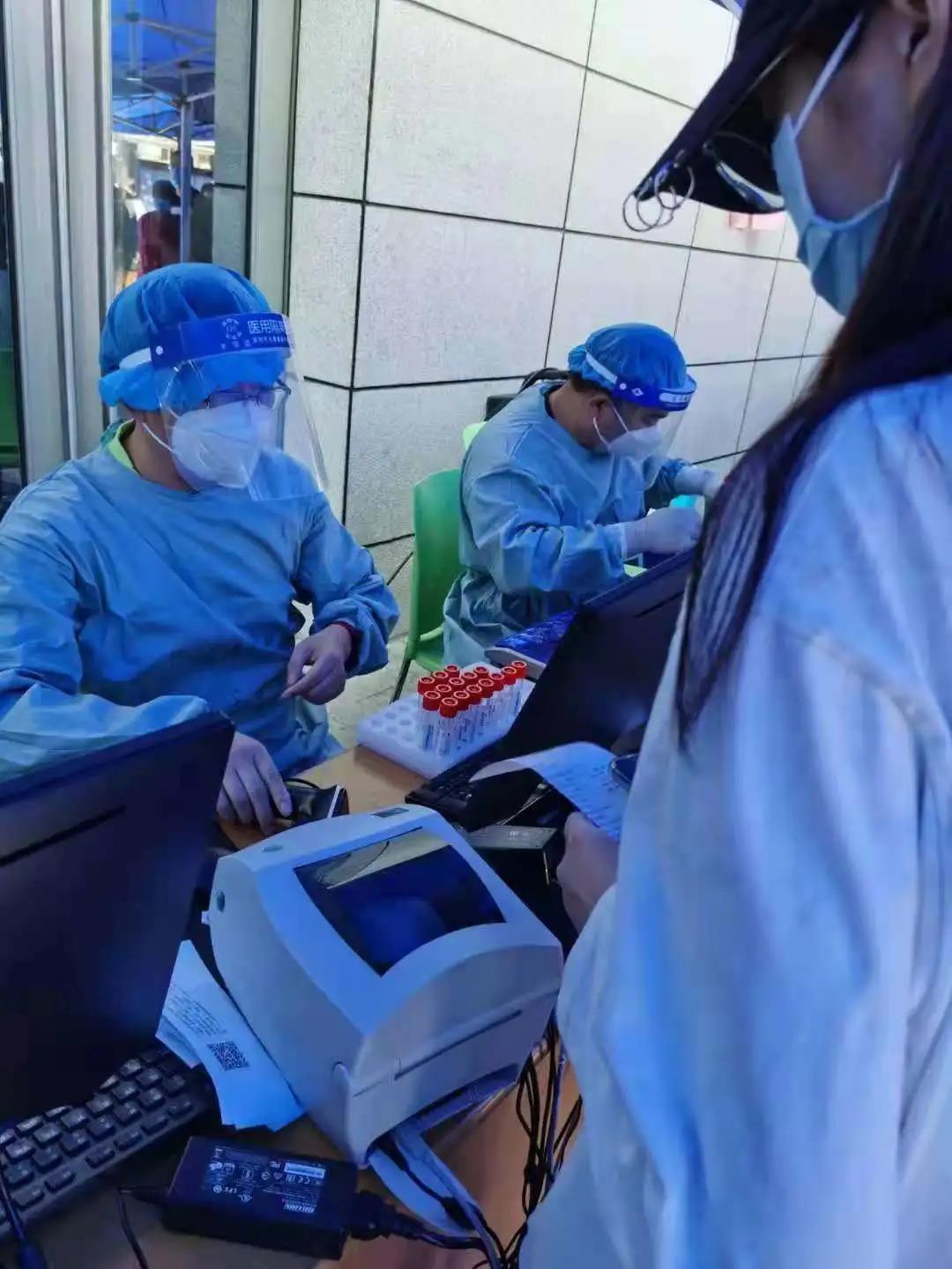 随着防控任务加重,医院不断地组织医疗队奔赴抗疫一线。院内外多个区域的核酸采样工作需要支援。王军主任积极组织科室人员全员参与各项抗疫工作,除了数人深入疫情一线的,还参与核酸取样、出入口防控、维持秩序、为群众答疑、医疗保障等等。