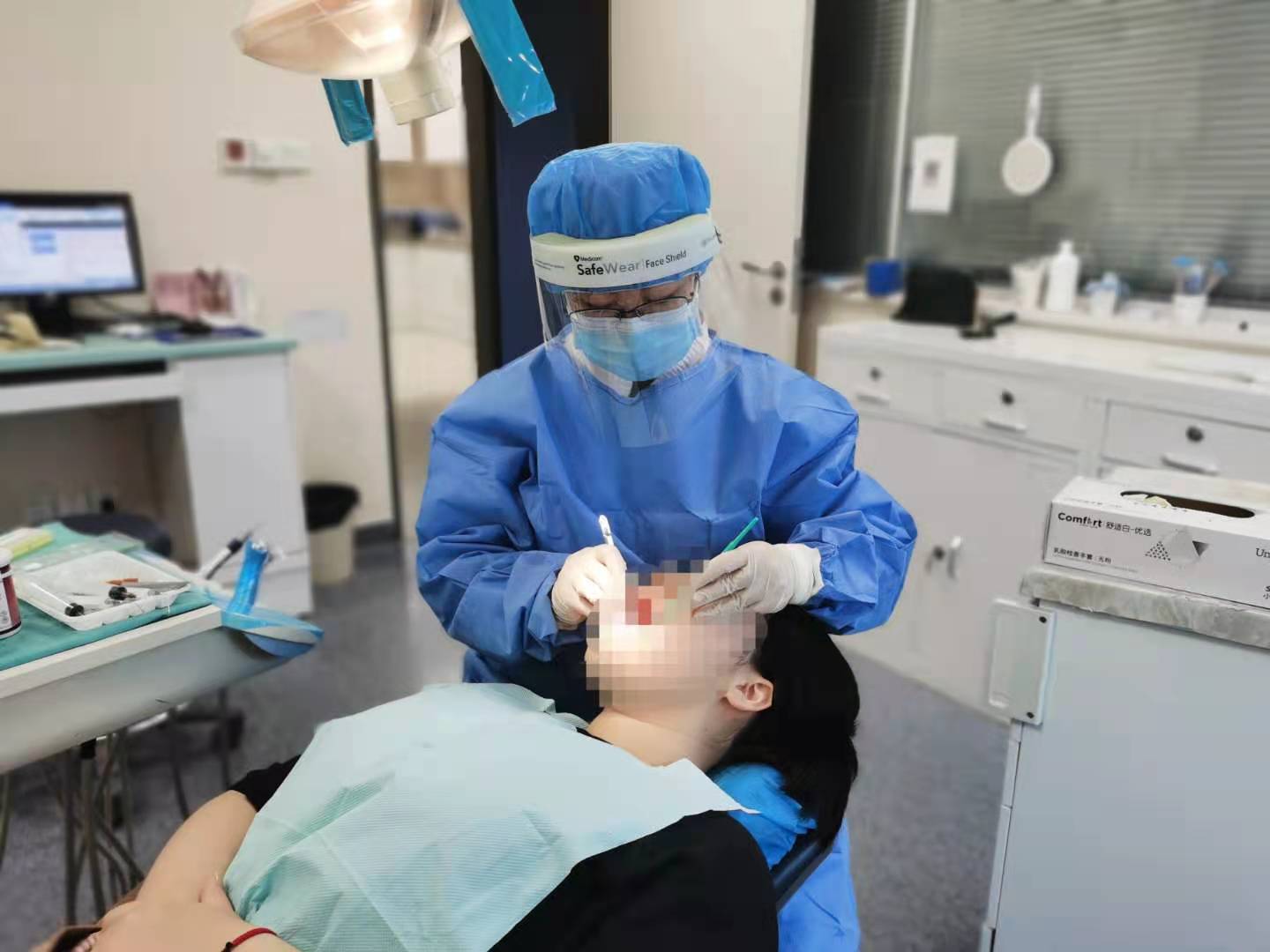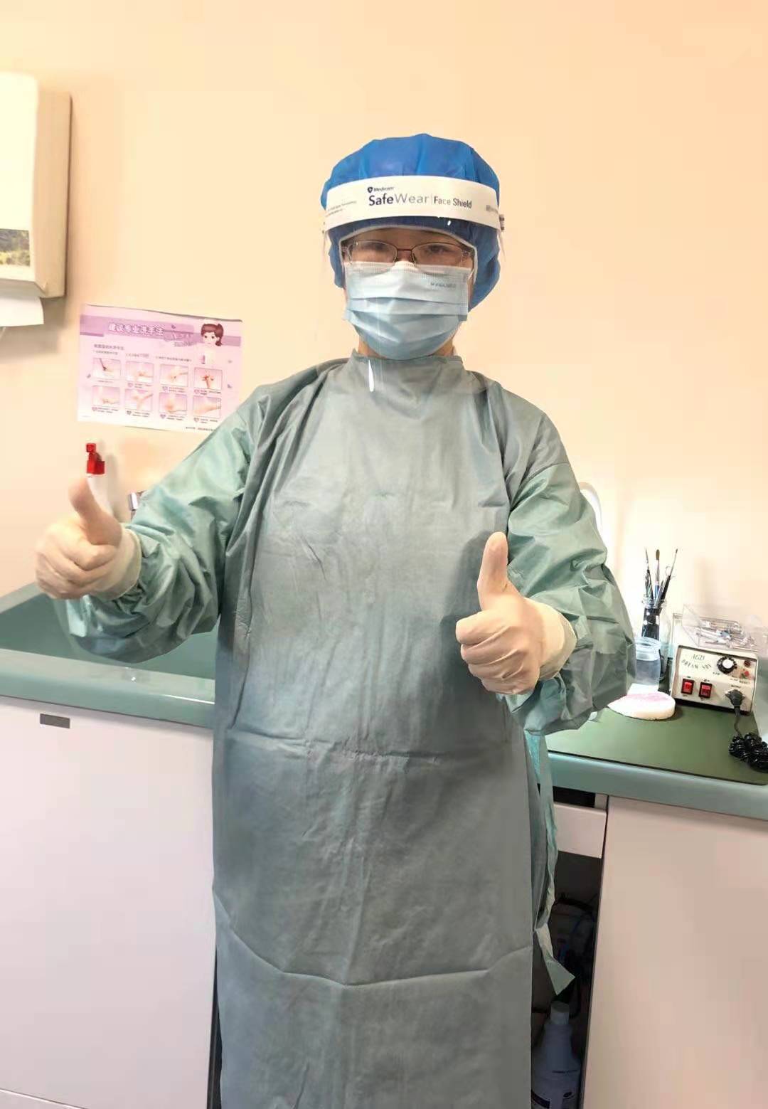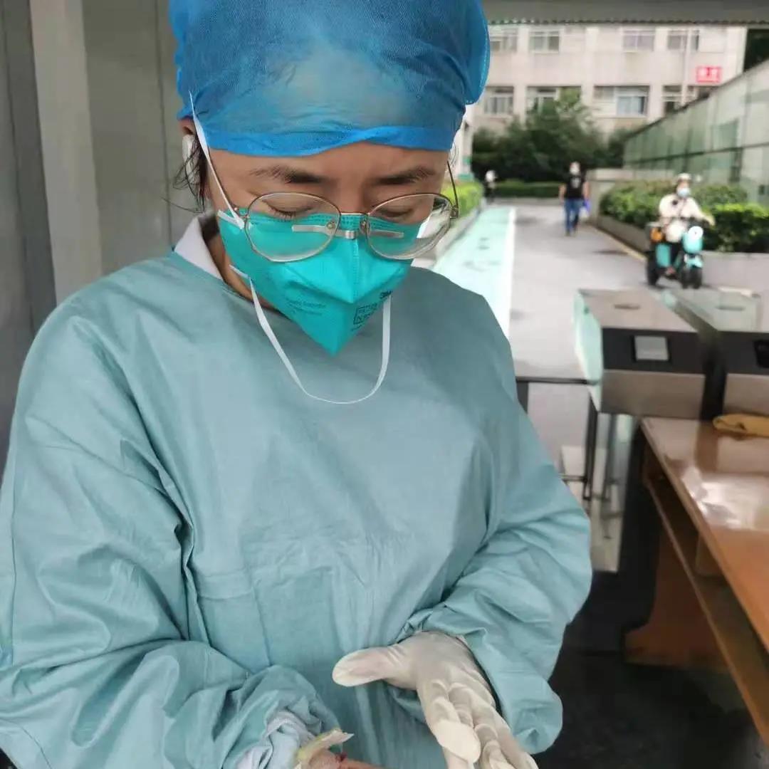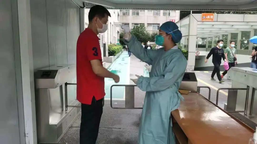要实现院内零感染,医务人员零感染,把好第一道大门关口是关系到抗疫成败的重中之重,在高温天气穿着防护服,身体又有其它不适,还在挂水的情况下,社员李苏卿积极参与,挂过水后放弃休息,立即投入到大门口的抗疫防控工作中去。