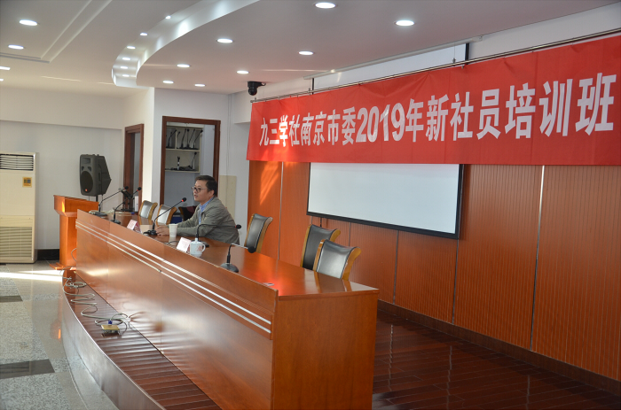 九三学社南京市委员会专职副主委盛俭主持了培训,并作开班动员讲话。“九三楷模”、九三学社江苏省委原专职副主委叶勇讲授了九三学社社史。他详细讲解了九三学社的缘起和发展,并通过对许德珩、张西曼、潘菽等九三学社先贤的故事,向新社员们传递了丰富的社史知识。