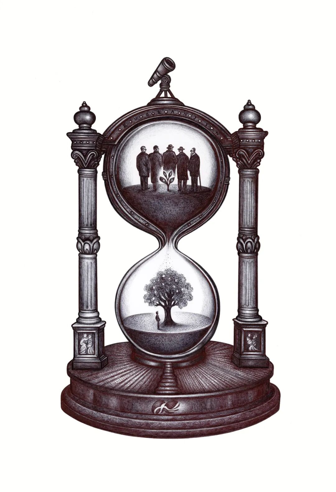 社员金若兰手绘画作《沙漏》献礼九三学社创建八十周年